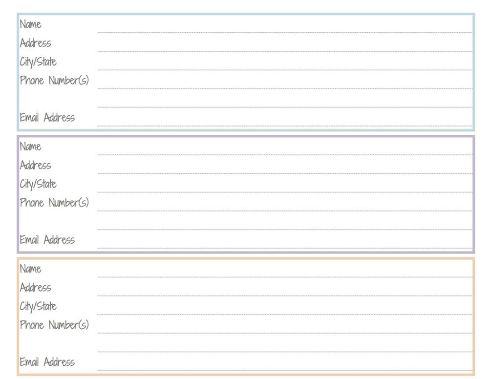 Address page for your planner that coordinates with the homeschool planner's color scheme. Print as many as you need!